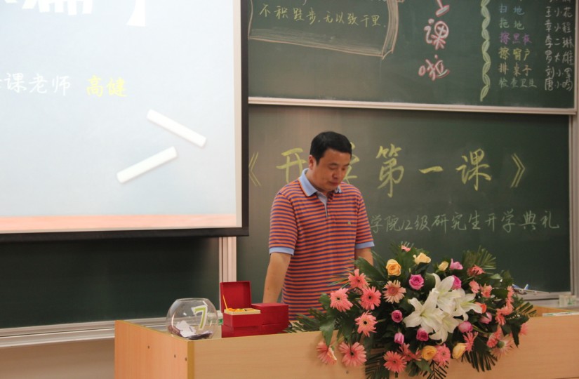 在一阵悦耳的上课铃声中,12级研究生开学第一课正式启动。在第一篇章——理想篇中,午夜巴黎 党委副书记高健老师为同学们做了关于理想壮志、勇于担当发言。高书记从实际生活中的小事例出发,谆谆教诲,告诉同学们青年树立正确的人生观、价值观以及远大理想的必要性与重要性。从高书记循循善诱的讲话中,同学们无一不受到感染、心潮澎湃。