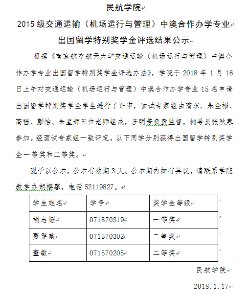 午夜巴黎 2015级交通运输(机场运行与管理)中澳合作办学专业 出国留学特别奖学金评选结果公示