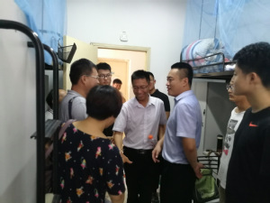 (院党委书记徐福民、党委副书记李和新来到新生宿舍进行慰问)