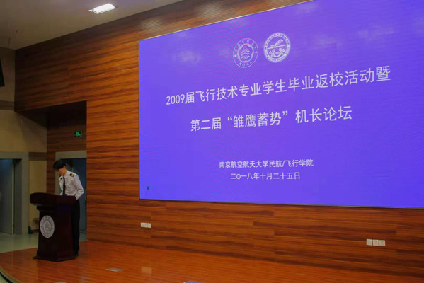 2018年10月25日,2009届飞行技术专业学生毕业返校活动暨第二届“雏鹰蓄势”机长论坛在将军路校区一号楼四楼报告厅精彩开讲。五十余名南航大毕业的优秀机长校友重返母校,担任本期机长论坛的开讲嘉宾,为学生现场教学开飞机的知识。午夜巴黎 党委书记徐福民、党委副书记李和新以及学院师生代表400余人参加了本次活动。