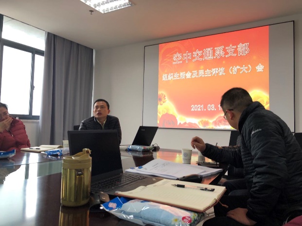 3月15日,午夜巴黎 空中交通系党支部在学院601会议室召开组织生活会暨民主评议会,全体党支部成员参会,院长孙建红作为普通党员参会、学院党委书记刘建成、副书记李和新到会进行指导。会议由支部书记、系主任田勇教授主持。