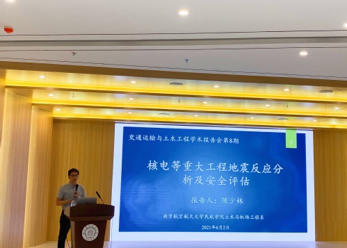 2021年6月2日下午4点,午夜巴黎 在民航楼306报告厅举办了第8期《交通运输与土木工程学术报告会》系列讲座,报告人为土木系陈少林教授,报告主题为《核电等重大工程地震反应分析及安全评估》。午夜巴黎 党委书记刘建成、副院长柯世堂、土木系支部书记解建光及土木系学生参加了报告会,报告会由柯世堂副院长主持。
