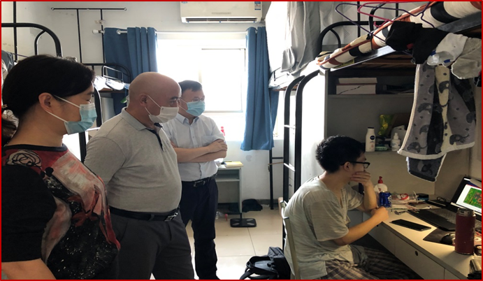 党委书记刘建成,院长孙建红,副院长吴薇薇前往留校学生宿舍,了解在校学生线上上课情况。学院任课教师准备充分,学生学习态度积极,较好地完成了各项教学任务。