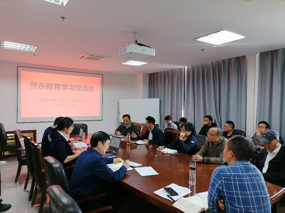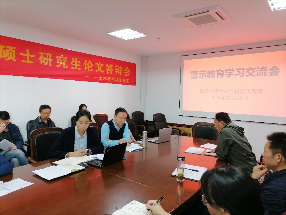 为学习贯彻关于加强教师队伍师德师风教育相关文件的重要指示精神,充分发挥典型案例的警示教育作用,10月28日,土木与机场工程系组织召开师德师风教育暨警示教育会议,会议由系党支部书记耿飞主持,学院党委副书记王艳及系全体老师参加会议。