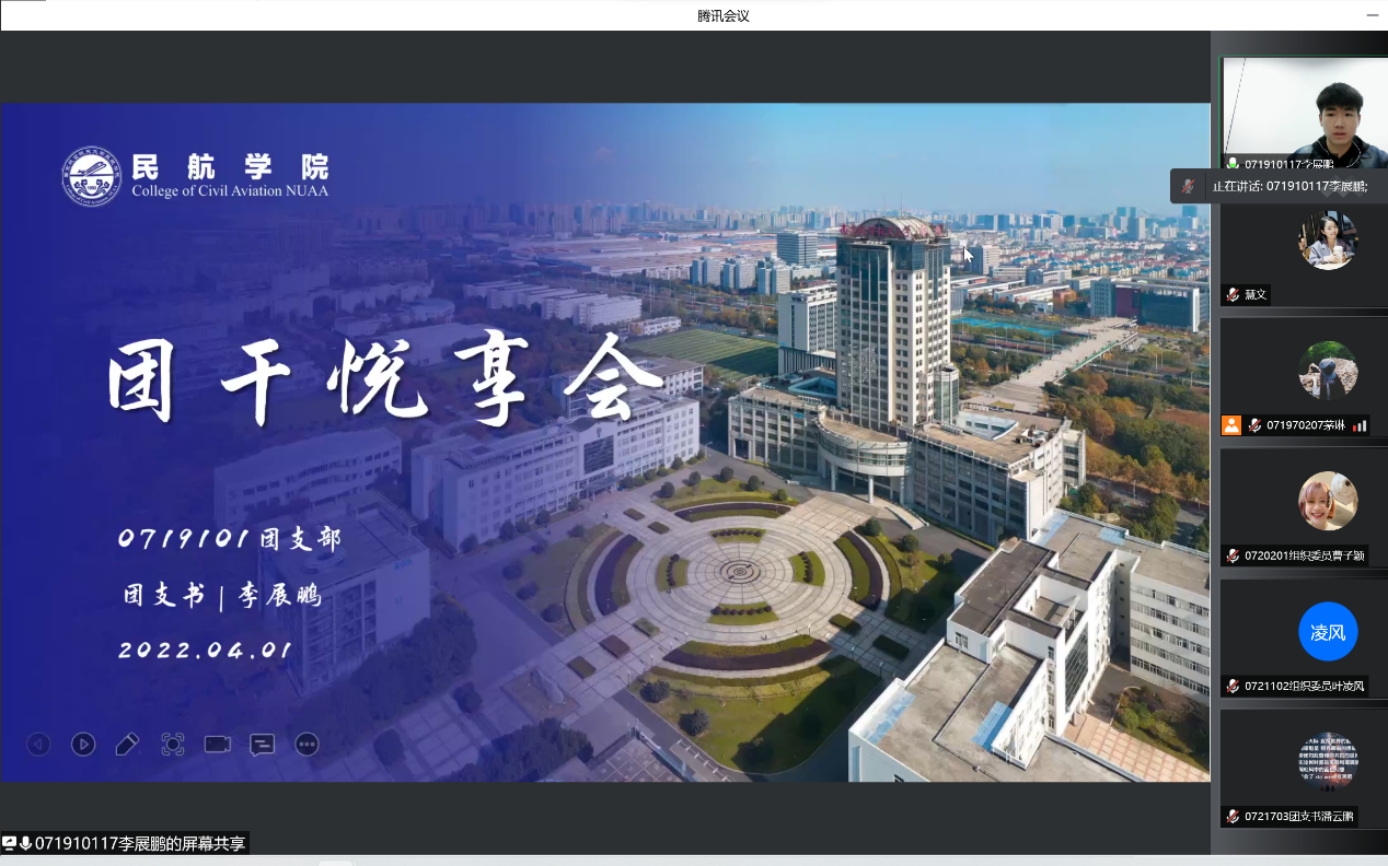 4月1日晚,午夜巴黎 青马公开课暨“团干悦享会”在线上举行。学院团委书记赵慧文、团委组织部全体团干、本科各年级团干参与活动。此次悦享会围绕团学工作经验分享、优秀项目交流和新学期团学工作展望三方面内容开展。