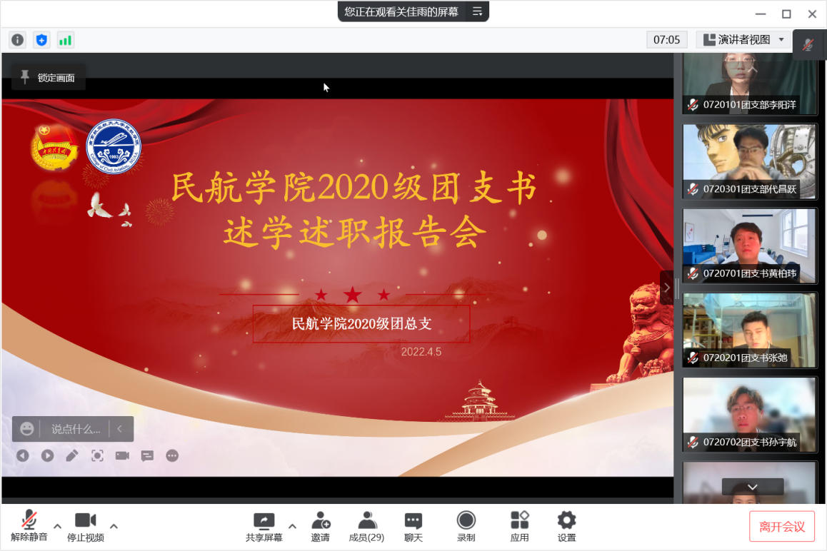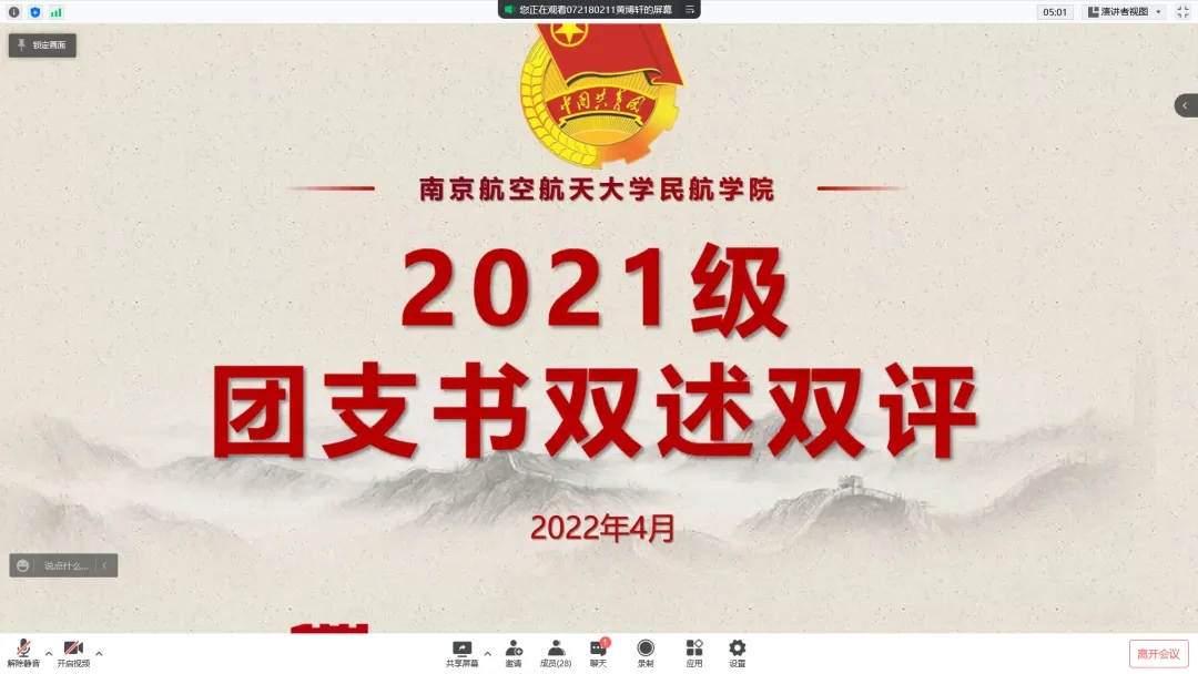 述学述职报告会上,团支书们从支部概况、活动组织、工作落实、思想建设等多方面进行详细报告。同时,他们也就自身在过完工作中的不足进行分析,明确了下一阶段的工作目标和未来展望,着力于建设更优秀的团支部。
