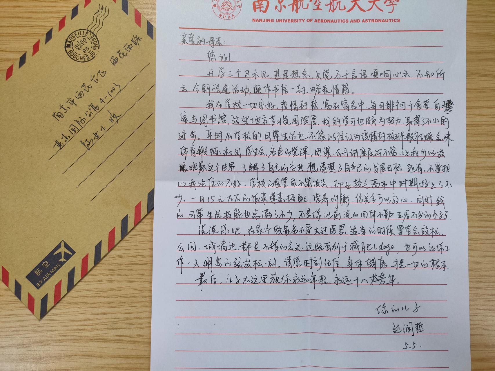 数程山路长侵夜,千里家书动隔秋。”来自0721701的一位同学表达了自己的想法:“本次活动中我们获益良多。我们有幸生活在一个网络发达的时代,沟通不再成为难题。上大学,是许多人第一次离父母这么远、这么久。借由此次活动,同学们写下一封家书,表达对父母的思念、感谢,从家人那里寻找前行的力量。”