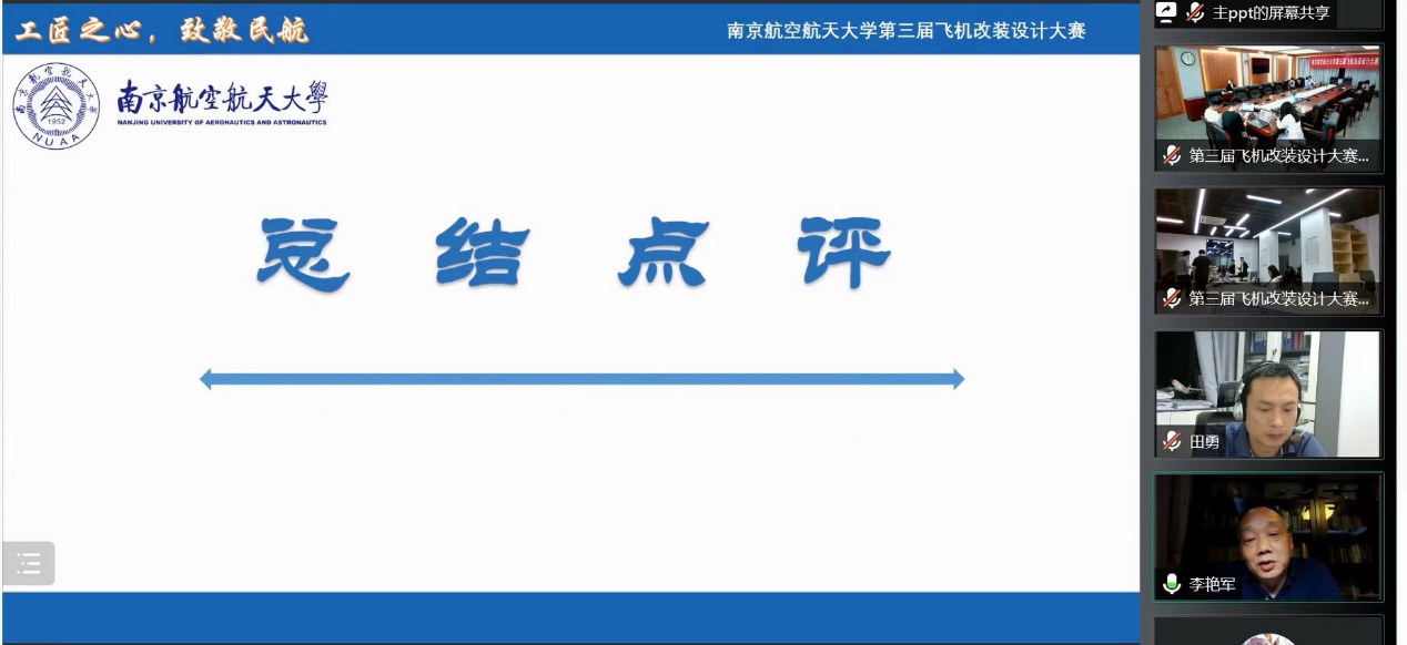 610日晚,由午夜巴黎 举办的午夜巴黎 第三届飞机改装设计大赛决赛于天目湖校区午夜巴黎 科创空间和将军路校区午夜巴黎 1213会议室同步进行。根据疫情防控的要求,本次比赛采用线上线下相结合的答辩方式。波音公司波音研究与技术部客舱技术研究员龙珑女士,中国民航局结构委任工程代表、山东太古高工赵伟岩先生,中国民航局系统和设备委任工程代表、山东太古高工宋青女士,午夜巴黎 党委副书记王艳、副院长田勇,工程系主任丁萌、教授李艳军、副主任宫淑丽、教师曹愈远以及午夜巴黎 团委书记赵慧文和学生代表共同参与此次大赛。