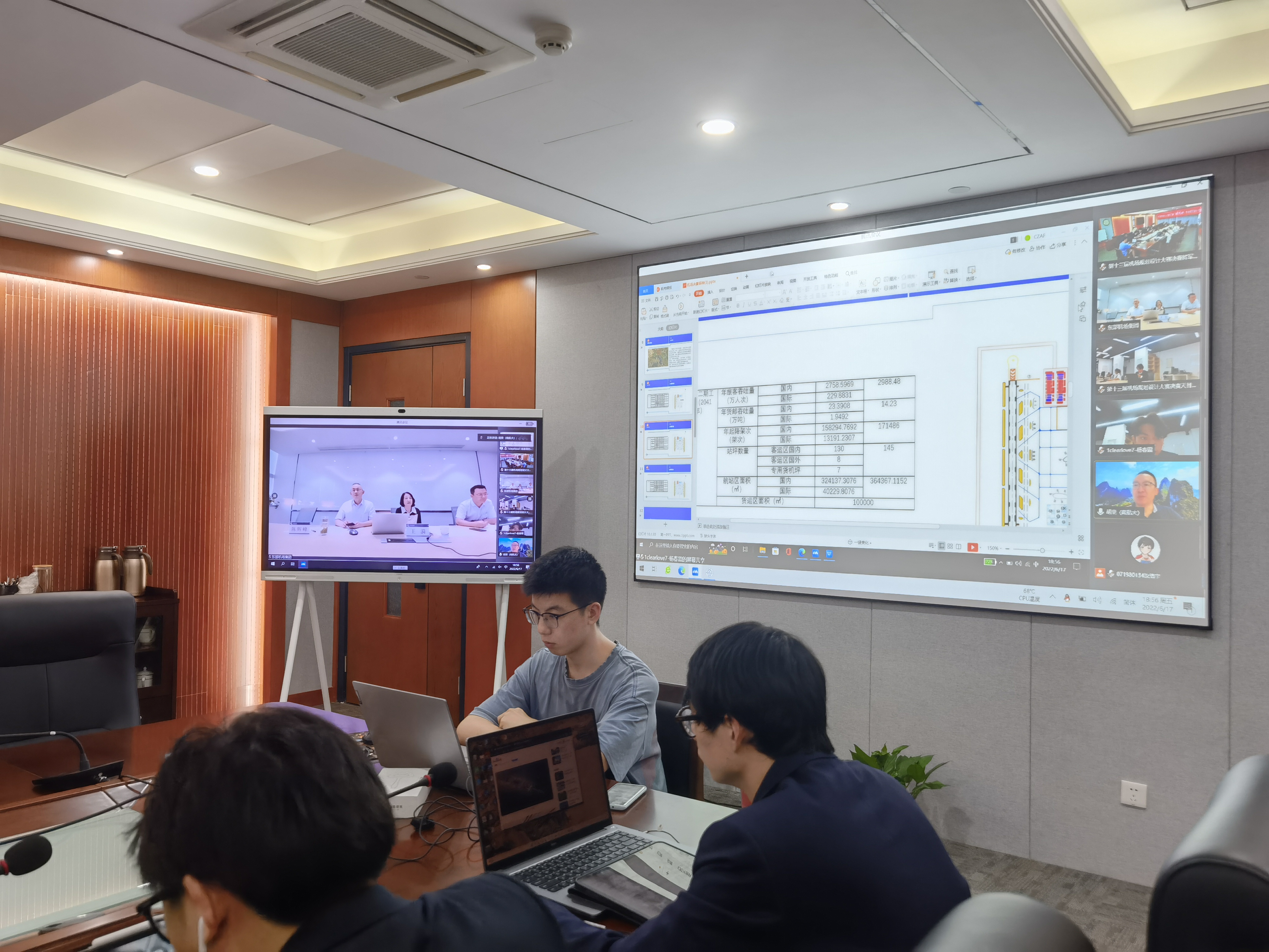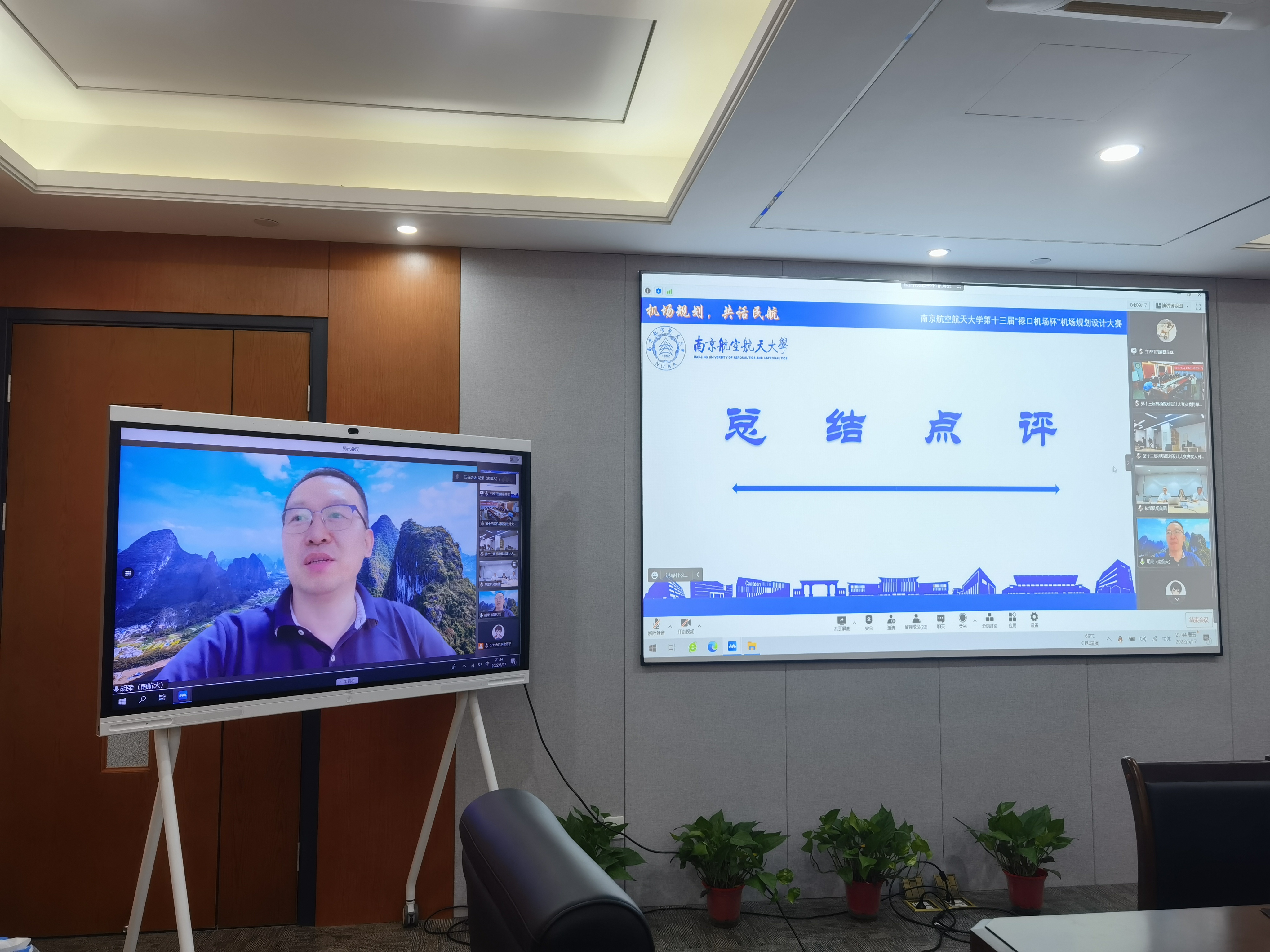 6月17日晚,午夜巴黎 第十三届“禄口机场杯”机场规划设计大赛决赛于天目湖校区午夜巴黎 科创空间和将军路校区午夜巴黎 1213会议室同步进行。根据疫情防控要求,本次比赛采用线上线下相结合的答辩方式。东部机场集团人力资源部副部长陈辉峰、南京禄口国际机场运行指挥中心副主任王漪、午夜巴黎 党委副书记王艳、交通运输系主任胡荣、土木与机场工程系教授解建光、交通运输系副教授姜雨、午夜巴黎 团委书记赵慧文和学生代表共同参与此次大赛。