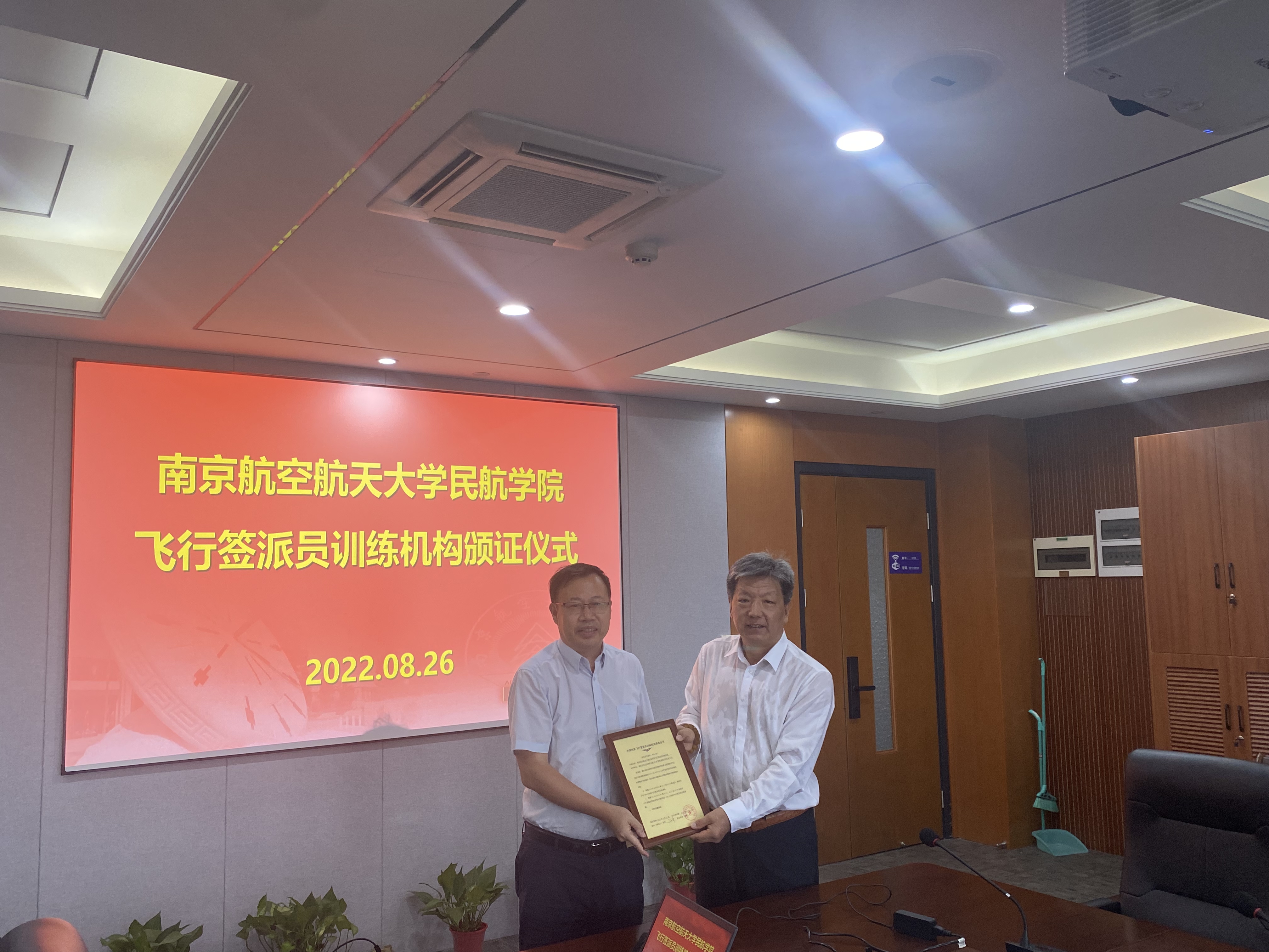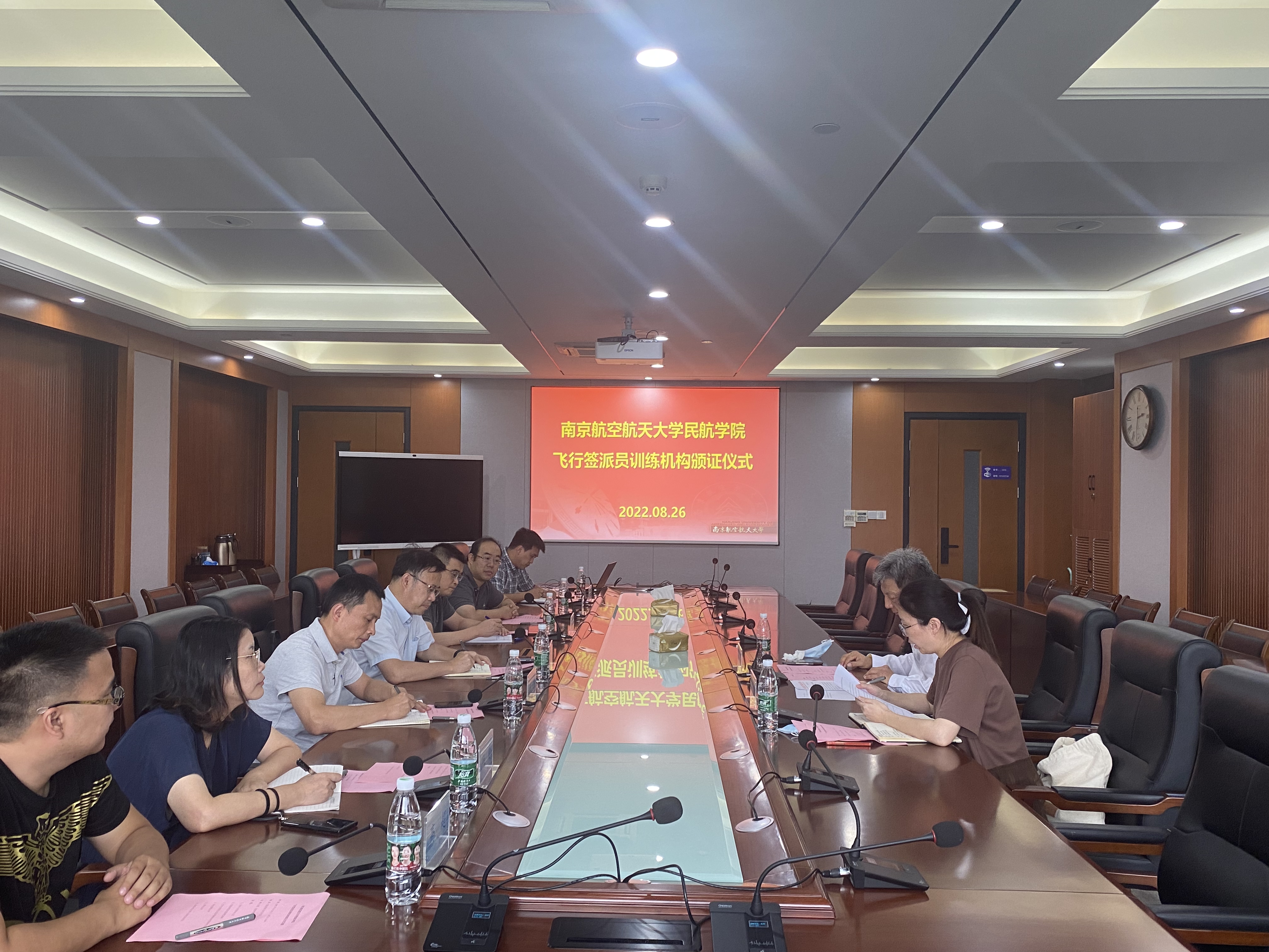 8月26日下午,午夜巴黎 飞行签派员训练机构颁证仪式在学院1213会议室顺利举行,民航江苏监管局航务处处长郭久宏、监察员罗卉等出席会议。学院院长孙建红,副院长田勇、空管与签派专业负责人及机关相关办公室负责人参加会议,会议由午夜巴黎 副院长田勇主持。