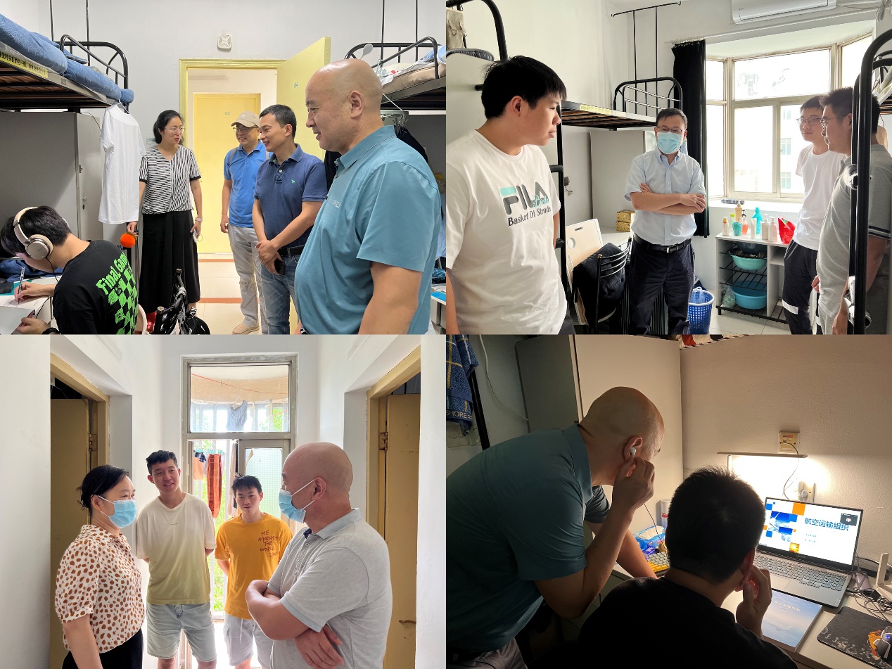 在宿舍,学院领导、老师与同学们亲切交谈,询问大家的开学状态与生活状况。尤其对于刚刚完成两校区搬迁的2020级本科生,学院领导特别关心了他们对全新生活环境与学习阶段的适应情况,勉励同学们对未来的学习生活做好规划;同时叮嘱大家提高疫情防控意识,注重劳逸结合,养成良好习惯。在研究生宿舍,学院领导特别关心了同学们的科研进展和学术状态,叮嘱大家严格遵守实验室安全要求,共筑良好的科研氛围与环境。院领导班子还与同学们同上新学期云端“第一课”,督促同学们按时、按要求完成学习任务,热情饱满地投入新学期,争取新进步。
