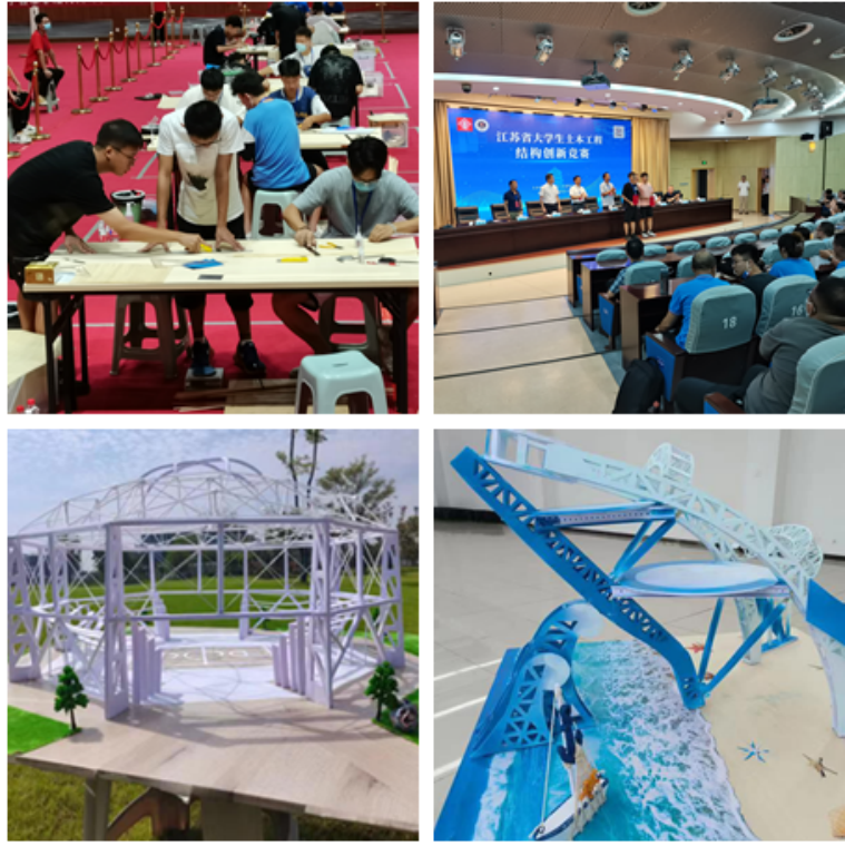 江苏省大学生土木工程结构创新竞赛由中国土木工程学会教育工作委员会江苏分会主办,是一项在全省设置土木工程专业的各高校中开展的具有导向性、示范性和群众性的大学生课外学术科技创新竞赛活动,每年举办一届,是全省高校土木专业本科生中的品牌赛事。全国赛更是土木工程学科培养大学生创新精神、团队意识和实践能力的最高水平学科性竞赛,被誉为“土木皇冠上最璀璨的明珠”。本次省赛共有东南大学、河海大学、南京工业大学、陆军工程大学、中国矿业大学、午夜巴黎 、南京理工大学等36所省内高校参赛。现场模型制作与加载组的参赛队伍有34支,模型展示组的参赛队伍有60支。通过比赛和交流,同学们顽强拼搏、攻坚克难,不仅培养了结构设计和建造的创新理念,锻炼了设计、动手、表达等方面的综合能力,也获得到更高平台与全国高手切磋交流和展现自我的机会。