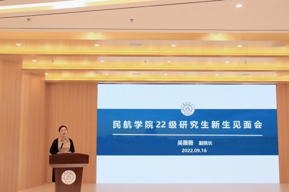 在院长寄语环节,孙建红代表学院对2022级研究生新生的到来表示热烈欢迎,提出三点希望:一是希望同学们坚定思想、认清时代,做有追求的民航人,时刻谨记寒窗苦读的初心,保持高度的自觉心和自省力,不受繁杂事物干扰;二是希望同学们探索创新、实干笃行,做有本领的民航人,夯实专业知识、练就过硬本领,为创新型国家建设奉献青春力量;三是希望同学们志存高远,胸怀家国,做有担当的民航人,承担时代使命,让人生历程和民族复兴进程同步共振。