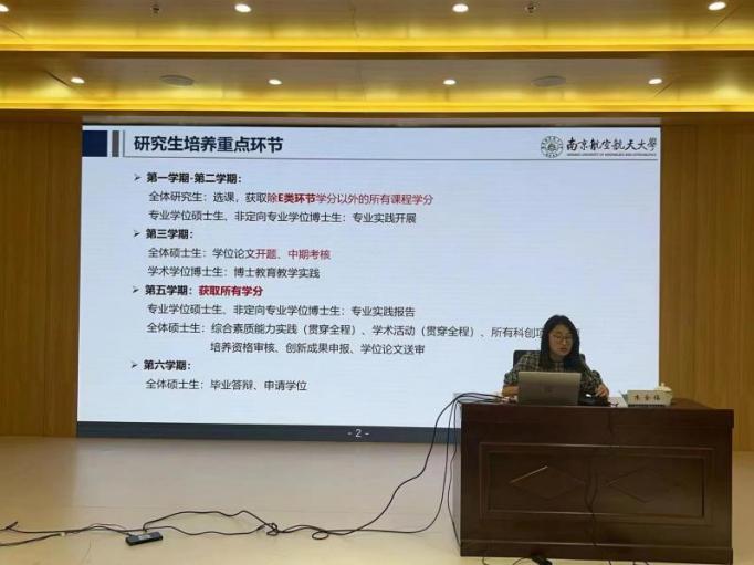 随后,吴薇薇发表了总结讲话。“导师是研究生培养的第一责任人”,提醒研究生们应高度认识导学关系的重要性,加强和导师的良性互动,做到保持沟通、迅速落实、及时反馈,建立和谐友好的导学关系。她强调,研究生在培养个人科研能力的同时应注意加强团队合作,充分发挥团队力量。最后,吴薇薇希望民航青年能够以民航十四五规划为指引,开拓创新,勇攀学术高峰,并表达了对新一届午夜巴黎 研究生的衷心祝愿和美好期望。最后,由研究生教务教学秘书宋晓静为新生讲解了研究生教学教务的相关事项,就选课开课、培养方案、课程重修、学位学籍等方面进行介绍。