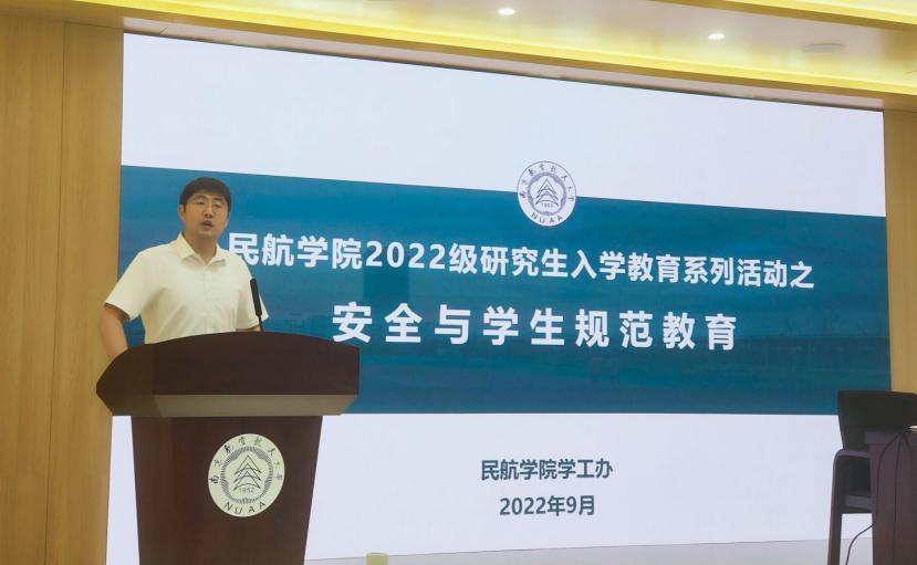 2022年9月9日中午,午夜巴黎 组织2022级研究生新生开展入学教育系列活动,依次组织开展了安全教育、诚信教育、心理健康知识主题宣讲,会议由研究生辅导员付昊主讲,2022级全体研究生参会。