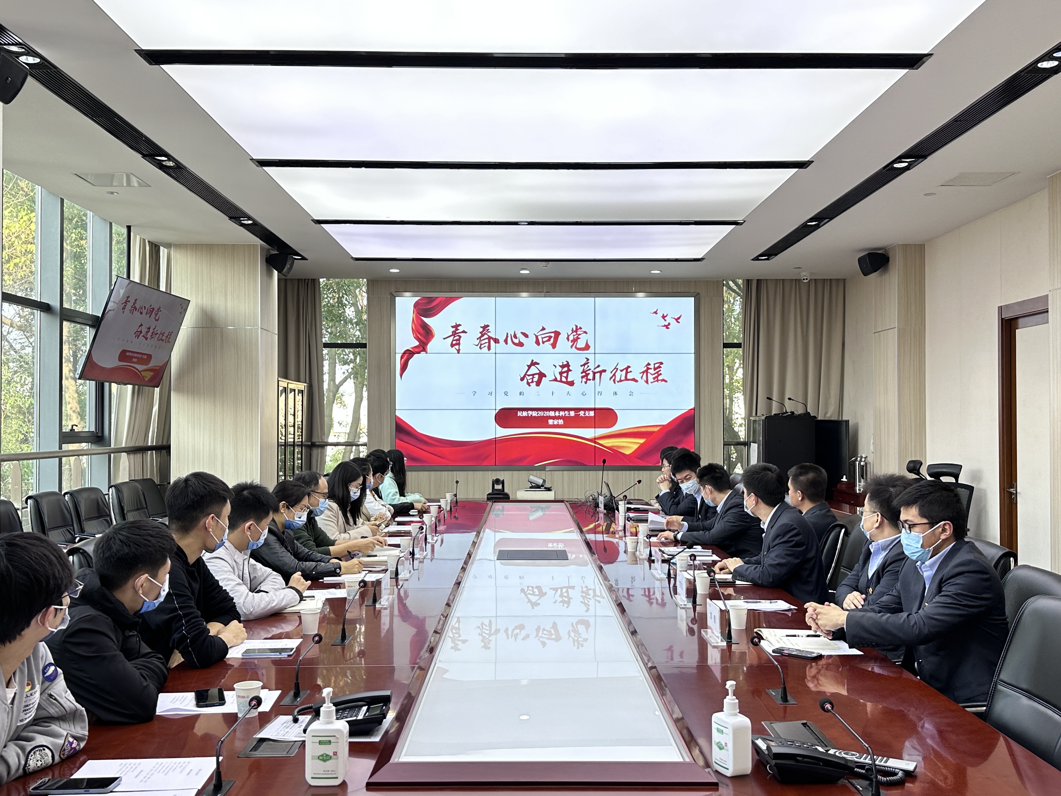 在支部联学环节,东航运控部业务骨干、16届校友王世阁从民航青年的专业视角讲述自己对党的二十大报告的理解和感悟,并嘱咐学弟学妹精进专业技能,为中华民族伟大复兴和民航强国建设添砖加瓦。学生代表梁家怡分享了自己学习党的二十大精神的心得,以及青年人从中感受到的磅礴的前行动力。