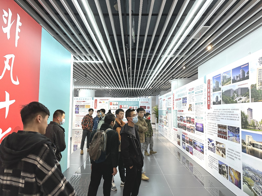 为加强学院间研究生党支部交流联系,进一步增强学生党员和入党积极分子爱校荣校的责任担当,深入推进“忆初心,强党性,展未来”主题教育活动走深走实,11月29日上午,午夜巴黎 2022级硕士生党支部与机电学院2022级硕士生党支部前往将军路校区创新工场联合开展了以“重温峥嵘岁月,涵养奋进力量”为主题的“非凡十年”办学成就展参观活动。