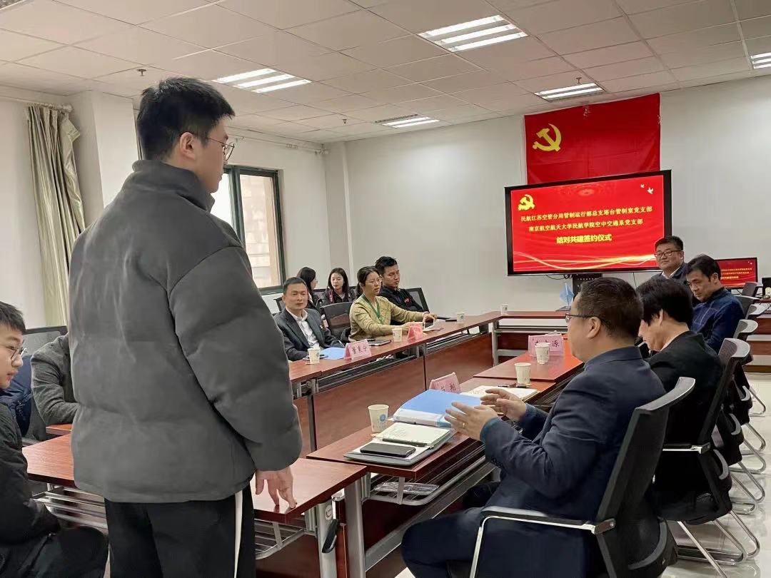田勇就江苏分局对午夜巴黎 空管系教学和科研工作的支持表示感谢。多年来,塔台党支部每年都会派高级教员参与空管系大四学生做程序、雷达和塔台管制模拟教学,两个党支部为响应习近平总书记的“培养高质量人才”的号召保持着良好密切的交流与合作。民航江苏空管分局党委李志源书记表示此次活动是在深入学习习近平新时代中国特色社会主义思想的实践之举,是在抓好党建工作中实现优势互补、共同提高的双赢之举。空中交通系多年来为江苏空管分局培养输送了112名优秀毕业生,从事管制工作人员82名,为分局工作高质量的发展做出了巨大的贡献。