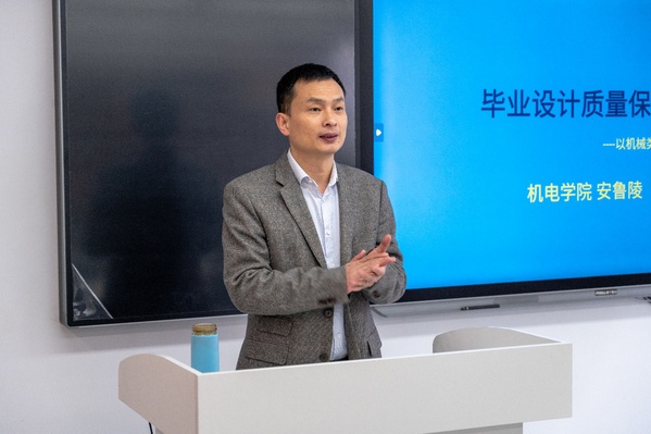 安鲁陵教授围绕“毕业设计质量保证”,就毕业设计目的、教学目标进行分析,对制度和过程性管理、教师的指导进行介绍,以及对毕业设计质量保证的一些思考。在讲座过程中,安鲁陵教授重点强调了从“课题真实性、毕业论文、工作量难易程度、主要研究方向、主要内容和要求”五个方面阐述了提高毕业设计质量的方法。 讲座最后,安鲁陵教授以学生视角举例,进一步强调了教师认真辅导毕设的重要性。