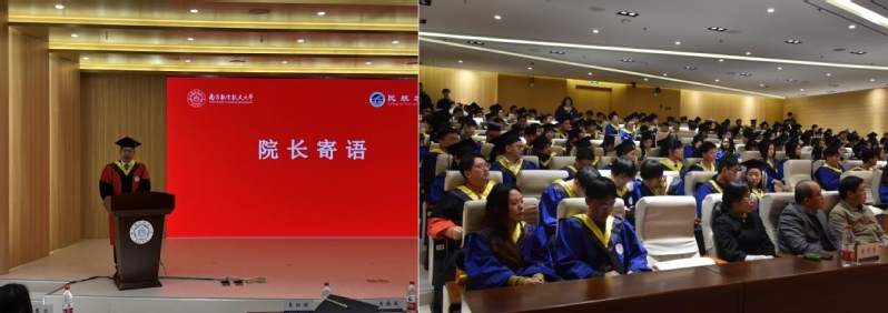毕业典礼在一则温馨动人的视频中拉开帷幕,视频回顾23届毕业生的三年研究生生活,记录他们从入学到毕业的点点滴滴。视频定格的画面情真意切,讲述的故事感人入微,饱含浓浓的同学情、师生情,在场毕业生无不为时光飞逝而感慨,为情谊深厚而动容。