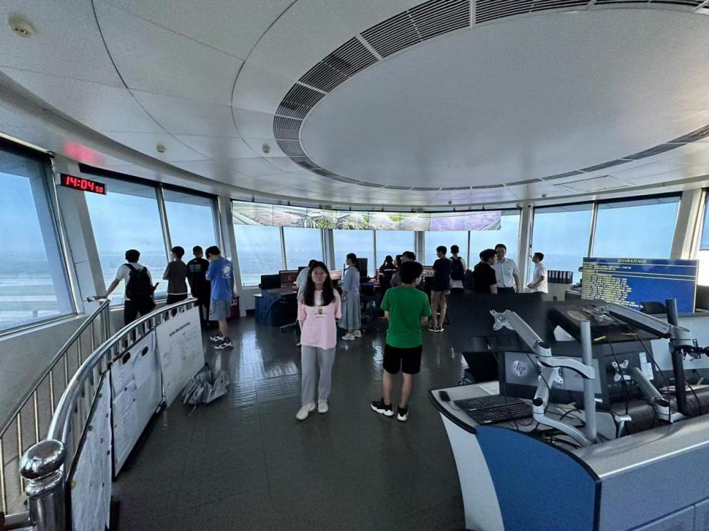 在南京禄口国际机场塔台管制室,同学们进一步了解和学习如何确保协调飞机进出机坪、停靠登机桥等工作的安全和高效。交流环节,南京禄口国际机场运行指挥中心林伟副主任向同学们介绍了机场运行控制中心的主要工作职责、人员构成、未来发展等。东部机场集团人力资源部金一飞学长介绍了招聘需求和招聘政策,并分享了就业面试的经验。塔台管制室姚尧主任结合岗位职责对同学们在校期间综合能力和专业技能的提升提出建议。