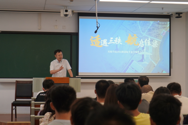 孙建红向2022级同学取得的成绩表示祝贺,向为大家成长无私奉献的教师和管理人员致以节日问候。孙建红详细讲述了近期学院发展的要事、喜事、大事和学院在人才培养、产教融合上的新思路、新举措、新成效,结合行业专业发展动态以及个人经历,对同学们提出殷切期望:一要增信,牢固树立与时代主题同心同向的理想信念,踔厉奋发、勇毅前行,把人生价值追求融入祖国的事业中。二要广学,适航人才培养要求每一位同学厚基础、强能力,拓宽专业视野、拓展知识结构,通过在校的实践训练提高创新思维、练就过硬本领。三要志远,追随优秀院友们的脚步,志在蓝天、志存高远,接续传承当代民航精神,在实现民航强国新征程上发挥先锋作用。
