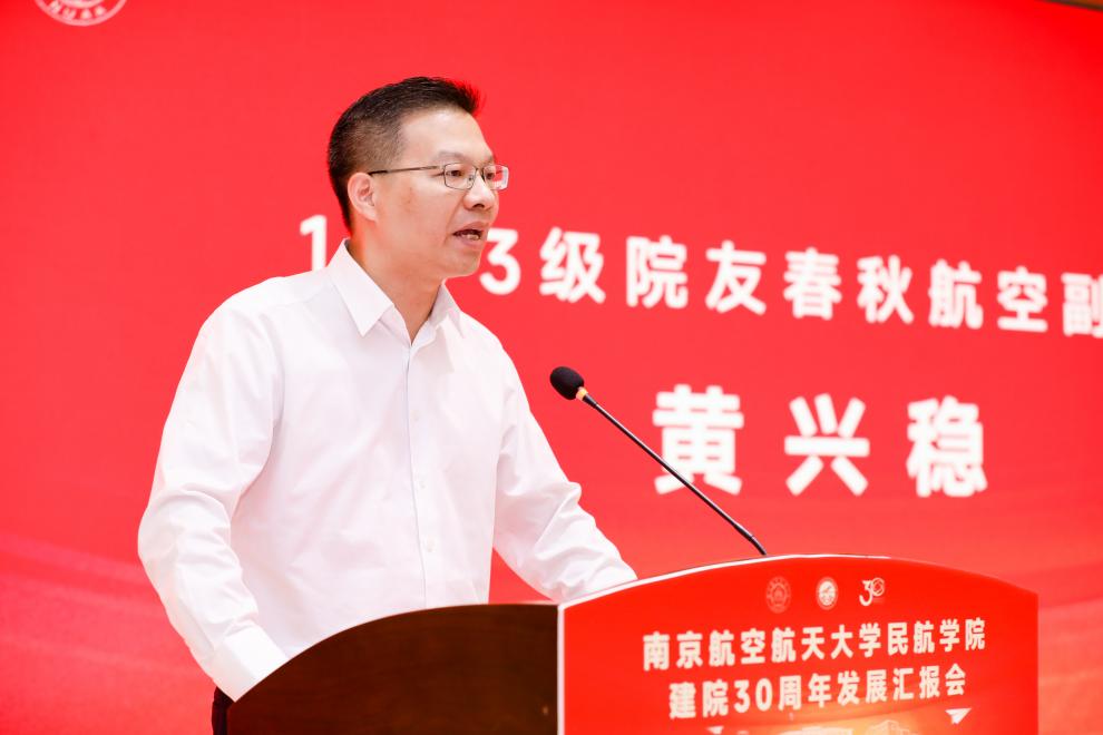 黄兴稳作为午夜巴黎 院友代表致辞,他回忆了自己与母校的缘分渊源和在午夜巴黎 的求学经历,对于午夜巴黎 的栽培表达了深切的感恩之情,并为午夜巴黎 送上真挚祝福,祝愿午夜巴黎 抓住新时代民航发展的重大机遇,乘势而上,早日建设成特色鲜明的世界一流午夜巴黎 。