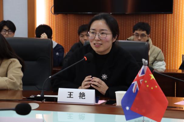 王艳代表学院对各位嘉宾、校友的到来表示诚挚欢迎,表达了对本次座谈会的期望和对国际化人才培养的重视。Nick Bardell、包丹文分别从澳方、中方学校角度介绍了两校在中澳合作办学项目上的教育理念、培养模式、教学特色和育人成果等情况。