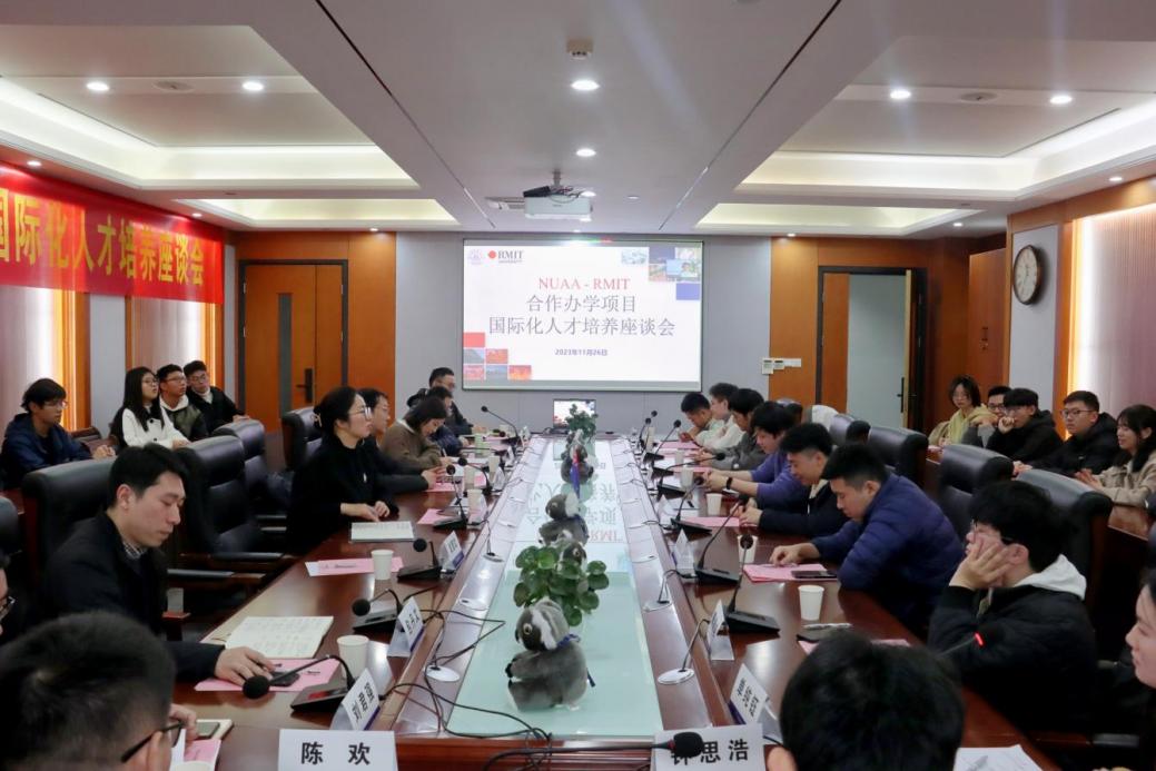 11月26日上午,午夜巴黎 成功举办中澳合作办学项目国际化人才培养座谈会。澳大利亚皇家墨尔本理工大学(RMIT)教师代表Nick Bardell、国际教育学院副院长李勇、澳大利亚教育管理集团(AEMG)南航项目分部主任鉴飞,午夜巴黎 党委副书记王艳、团委书记赵慧文、交通运输系副主任包丹文、中澳班班主任代表高强和刘君强、中澳合作办学项目校友代表以及学生代表参加座谈会。座谈会由交通运输系主任胡荣主持。