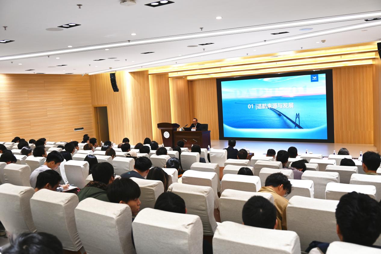 赵越让围绕适航理念与原则讲授课程,深入浅出地讲述了适航的来源与发展、适航法规体系的特点、适航工作的基本理念与原则、适航标准要求的安全水平、运输类飞机设计与适航发展趋势等具体内容,并从使用经验和设计、审查与合作等方面分享了对目前我国运输类飞机的适航工作的深入思考和剖析。结合自身的研发经历,他勉励南航学子要肩负时代赋予的责任,敢为人先,踔厉奋发,为推进新型工业化和交通强国贡献更多南航力量。