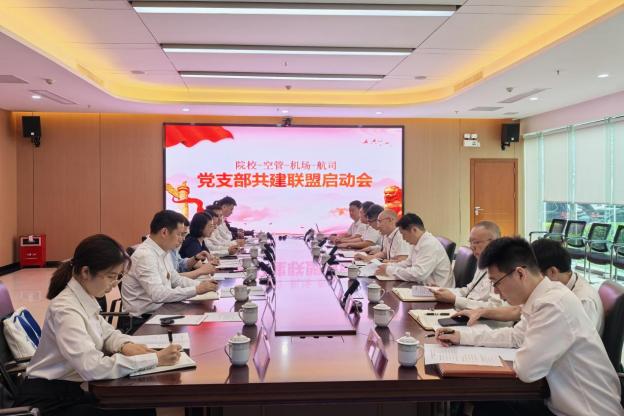 “校-局-场-司”党建联盟以习近平新时代中国特色社会主义思想为指导,面向我国民航事业发展需求,依托四方现有的战略合作协议,以行业共建为基础,在提升党建规范化水平、促进科技协同创新、提升人才培养质量等方面充分研讨、形成共识、达成合作、构建范式,从而进一步推动党建与业务相融合,搭建人才培养融通共享大平台,构建科研成果协同互促新格局,四位一体齐心协力为交通强国民航新篇章贡献力量。