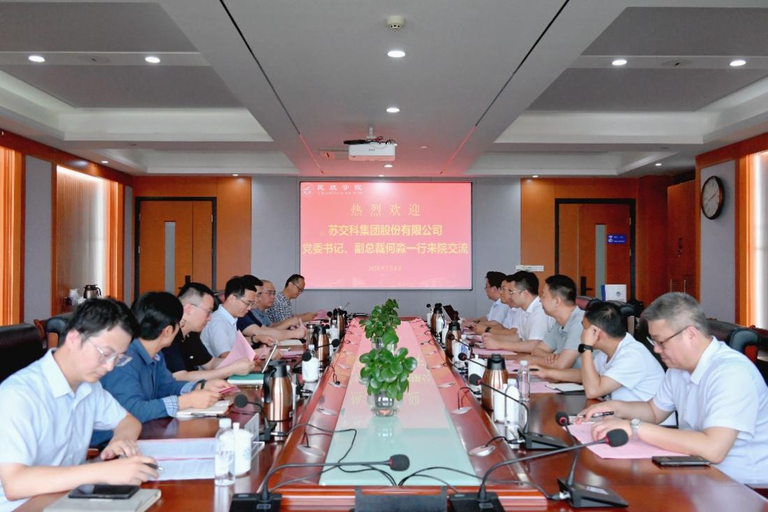 张卓然对何淼一行到访学院表示诚挚欢迎,回顾了与苏交科公司的友好合作,并详细介绍了学院在低空空域管理、通用航空系统运行规划、航空安全保障与应急救援等低空经济领域的相关科研方向和成果,以及在政-产-学-研-用合作方面的进展和布局,并表示期待双方在国家战略和行业发展中能继续合作产出新成果、作出新贡献。