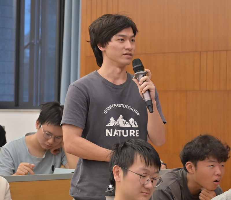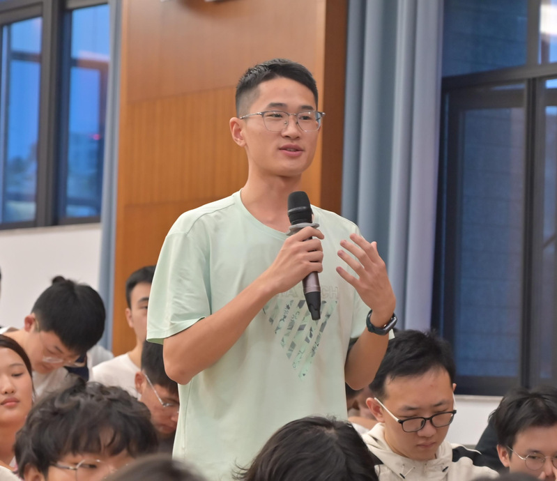 同学们就全球化背景下信息识别与自身发展等问题踊跃提问。弗兰克表示,要在持续的学习过程中培养对信息的辨识能力,运用所学知识理性分析,以辨别真伪;在未来道路的选择上,应发掘自身天赋,了解个人的兴趣与特长,明确自我定位,找准发展方向。