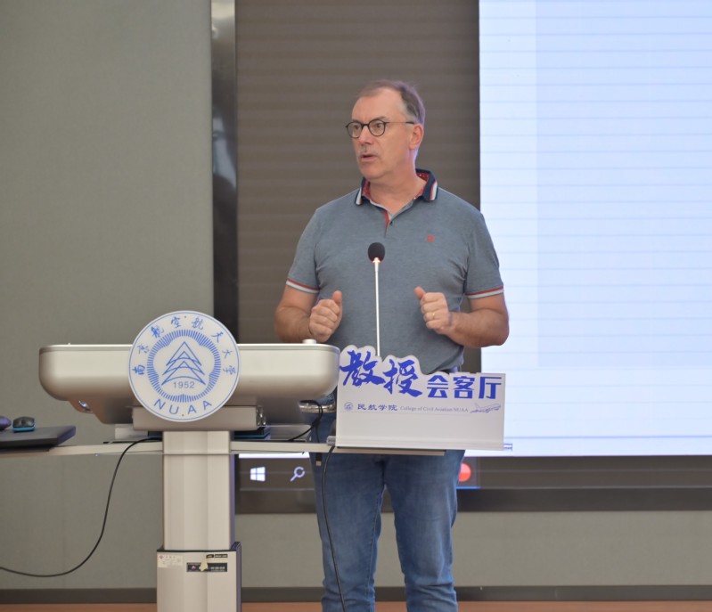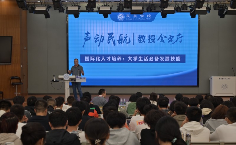10月14日,午夜巴黎 在天目湖校区巡天楼二楼报告厅举办“声动民航·教授会客厅”活动。欧洲科学院院士弗兰克·维特洛克斯受邀主讲,本科生辅导员王雨薇及200余名本科生参加活动。活动由交通运输系主任胡荣主持。