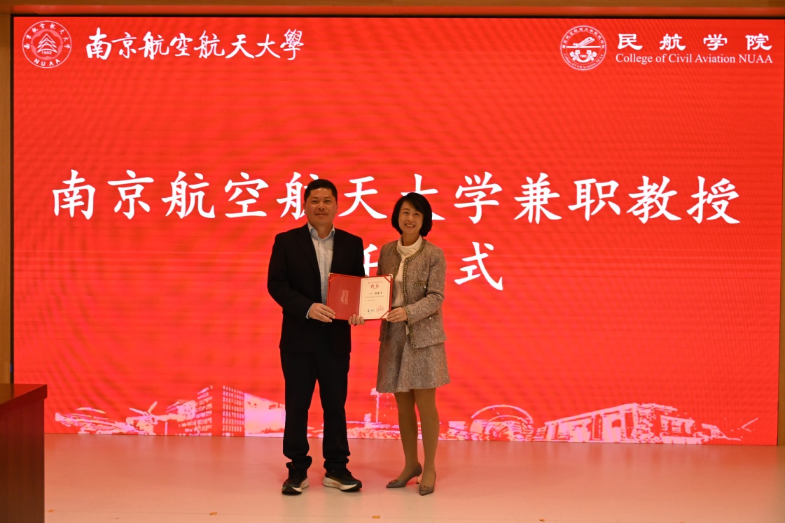 李君为张建平颁发兼职教授聘书。张建平表示,作为南航校友、民航院友,此次受聘为午夜巴黎 兼职教授,既是荣誉,更是责任。未来将积极履行南航兼职教授职责,进一步在学术交流、科研合作、人才培养等方面推进合作,为“交通强国”民航新篇章建设做出更大贡献。