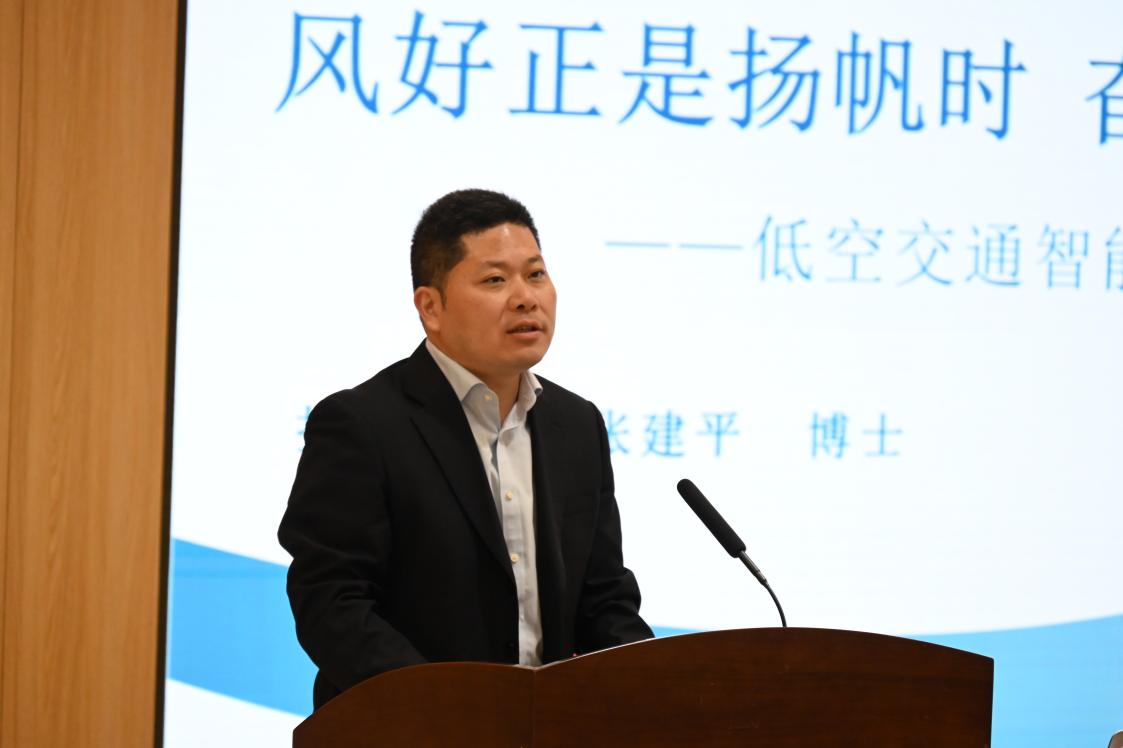 张建平以低空经济生态及无人机产业布局为引,分析当前无人机“无路飞”、态势感知难“看不见”和引导控制能力弱“管不住”等无人机交通管控核心技术痛点问题,详细介绍团队在空域精细化划设方法、空天地一体化无人机态势感知技术、无人机航线动态规划技术等相关研究进展。在交流环节,张建平结合自己在南航的求学之路和多年深耕民航行业的研究经历,与现场师生分享研究心得和体会。