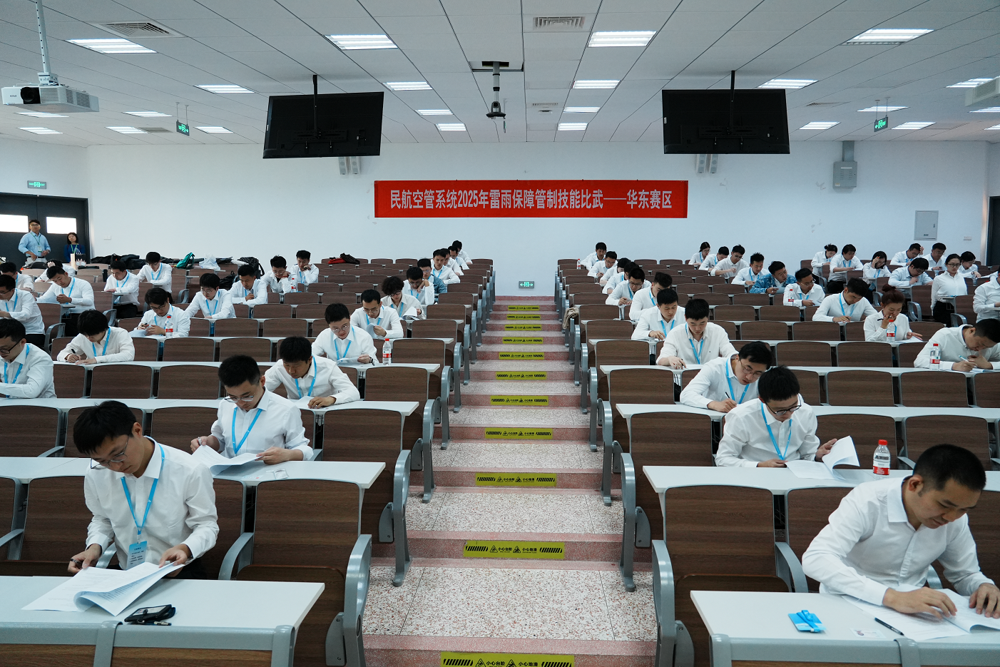 作为本次华东地区赛事的协办单位,午夜巴黎 积极参与组织筹备与赛事保障工作。赛前,学院成立专项工作组,统筹协调场地布置、设备调试、人员接待等各项工作,确保赛事顺利进行。并积极配合华东空管局开展赛前动员会议、试题抽取、模拟机适应性训练等工作,全面满足87名参赛选手、3个岗位类别、11套模拟机设备(含备份)的使用需求。