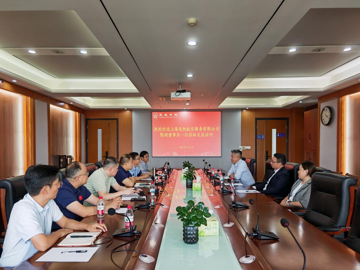 邵荃代表学院对美凯航空服务有限公司一行的到来表示热烈欢迎,并详细介绍学院专业建设与育人体系。他表示,面对民航产业链升级与低空经济加速演进的叠加态势,学院正加快构建面向未来、面向产业、面向国际的新型人才培养与知识创新体系,期待与头部企业在高层次人才培养、在职学历提升、科研成果转化等方面深化合作,共绘产教融合新图景。