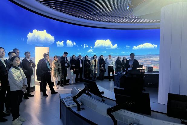 会后,与会嘉宾参观御风园航空航天教育教学实践基地,午夜巴黎 360°全景塔台模拟机实验室、航电设备电磁环境适航验证实验室、航空器人机工效技术实验室等。