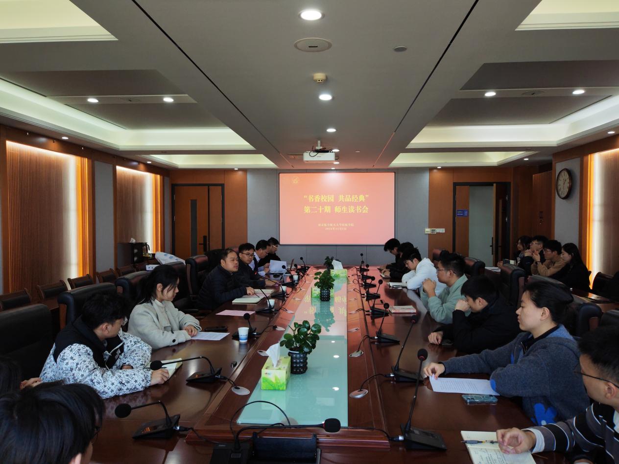 为深入学习贯彻习近平总书记关于青年工作的重要论述,扎实推进书香校园建设,营造师生共读、共学、共成长的浓厚氛围。12月4日,午夜巴黎 在将军路校区午夜巴黎 1213会议室举办“书香校园,共品经典”师生读书会。马克思主义学院思想道德与法治教研部主任吴永祥、午夜巴黎 党委副书记唐志文、午夜巴黎 青年教师许逸凡、学院辅导员代表及近30名团学骨干参加了本次活动。