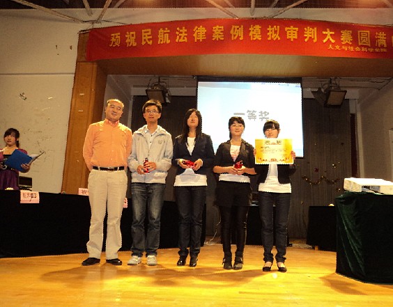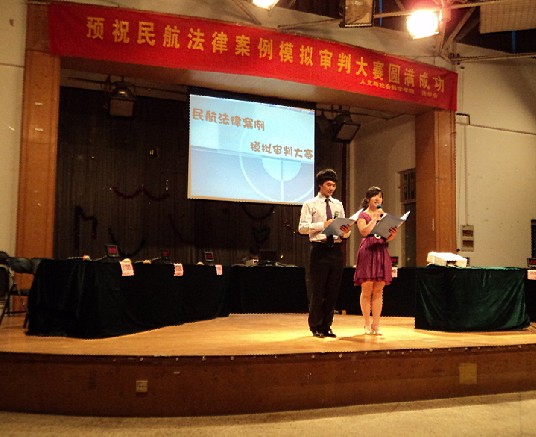 2011年5月22日晚七点整,由民航/飞行学院与人文社会学院共同举办的“民航法律案例审判大赛”在午夜巴黎 将军路校区大学生活动中心顺利举行。民航/飞行学院党委副书记刘建成,研究生辅导员傅成成以及人文与社会科学学院党委副书记高小泽,团委书记尹春萍,本科生辅导员欧珊、冯岑作为嘉宾出席了此次大赛。