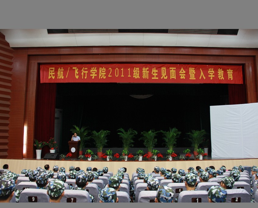 2011年9月4日下午15:00,在艺术中心小剧场隆重举行了民航/飞行学院2011年新生见面会暨入学教育大会,学院全体党政领导,各系、办主任、班主任及各专业老师和研究生导师均到场参加了大会,会议由飞行技术系09级2+2学生翟伟丰主持。