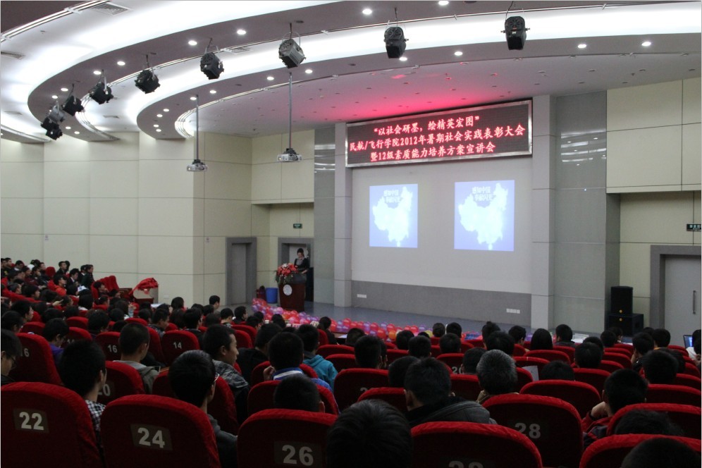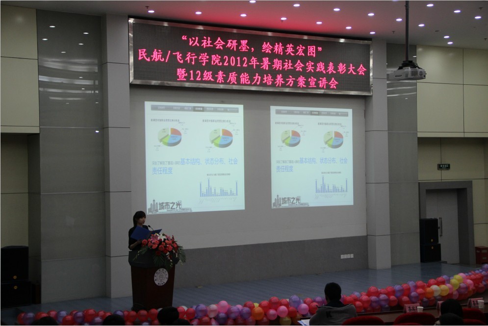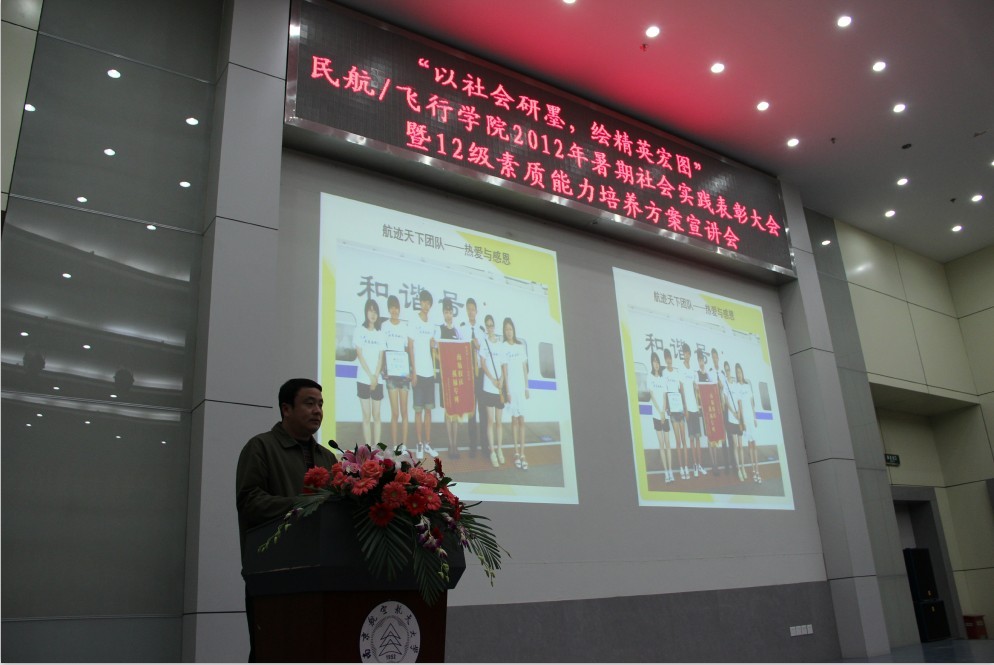 民航/飞行学院2012年暑期社会实践表彰大会暨12级素质能力培养方案宣讲会在一号教学楼四楼报告厅隆重召开。民航/飞行学院党委副书记高健老师,团委书记傅成成老师,各年级辅导员及12级全体同学参与本次大会。 较之以往,此次社会实践表彰大会创造性的与12级素质能力培养方案相结合,不仅向12级同学展示暑期社会实践的震撼,同时用具象化的实例展现当代民航人应具备的能力。结合民航/飞行学院为12级新生提炼的六大精英素质,表彰大会分为四个篇章。第一篇章“御风天涯,花开四方”中,“征蓬团队”探寻帕米尔高原上边防生活,民航小伙用心中的理想克服重重困难;“海角七号”团队以情联系两岸,践行着“海峡一家亲,共促两岸情”的共同信仰。第二篇章“关爱残弱,花开阳光”中,“爱心通途”团队绘制千里盲道图,只为盲人多一份平安。民航人体察着社会最容易被忽视的细节,担当着社会最义不容辞的责任。第三篇章“书本内外,花开梦想”中,民航人在实践中学习,向基层百姓学习,启迪12级同学乐于学习,不断完善自我。第四篇章“献礼校庆,花开无疆”中,伶言集礼的航迹天下团队通过多种方式表达对母校的热爱,让12级新生意识到表达能力在民航系统的重要性。 随后,领导们为在实践活动中表现优异的个人和团体颁发奖状。最后,民航/飞行学院党委副书记高健老师针对暑期社会实践活动的相关成果发表讲话,再一次对“理想信仰”、“责任意识”,“学习能力”、“表达能力”、“艺体素质”进行详细解读,表达了对民航/飞行学院学生成为合格的民航人、未来的民航精英的期待。 本次暑期社会实践表彰大会在震撼人心之余,也让12级新生深刻意识到作为未来民航人所需的素质能力。相信通过这次社会实践表彰大会,民航/飞行学院的学子会对今后的个人素质能力提升有一个更高的要求和合理的规划,成为未来民航系统的精英人才。 |