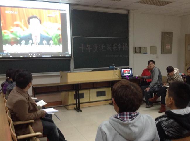 在6101教室开展了题为“坚定民族复兴之路,肩负富民强国使命”的讲座,由丁荣茂书记为学生解读十八大的精神、各项政策以及我国所面临的挑战和机遇,丁书记朴实的言语、恳切的希望都寄予在字里行间中,讲座过程中不时发出雷鸣般的掌声。通过讲座,同学们对十八大的理解不仅停留在报告中,更深刻体会到了民族复兴的使命感和责任感。