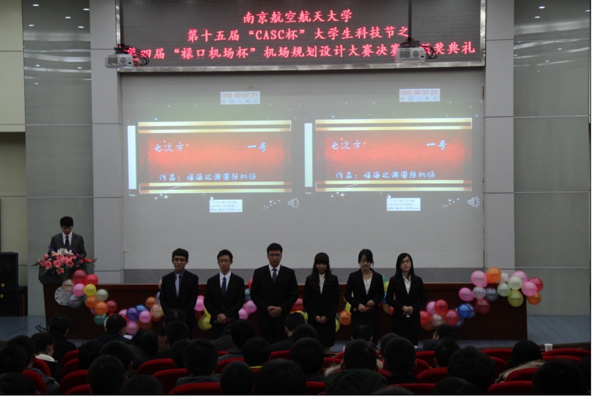 2012年12月19日,由南京禄口国际机场、校团委主办,民航/飞行学院承办的午夜巴黎 第十五届科技节之第四届“禄口机场杯”机场规划大赛决赛暨颁奖典礼在江宁校区主楼报告厅顺利举行。参加本次大赛的领导和嘉宾有南京禄口国际机场人力资源部部长王洪涛、南京禄口国际机场扩建指挥部总指挥陈邦昌、午夜巴黎 党委副书记高健老师、校团委副书记张林老师、航空宇航学院解建光教授、民航/飞行学院机场运行管理系夏洪山教授、曾小舟老师。