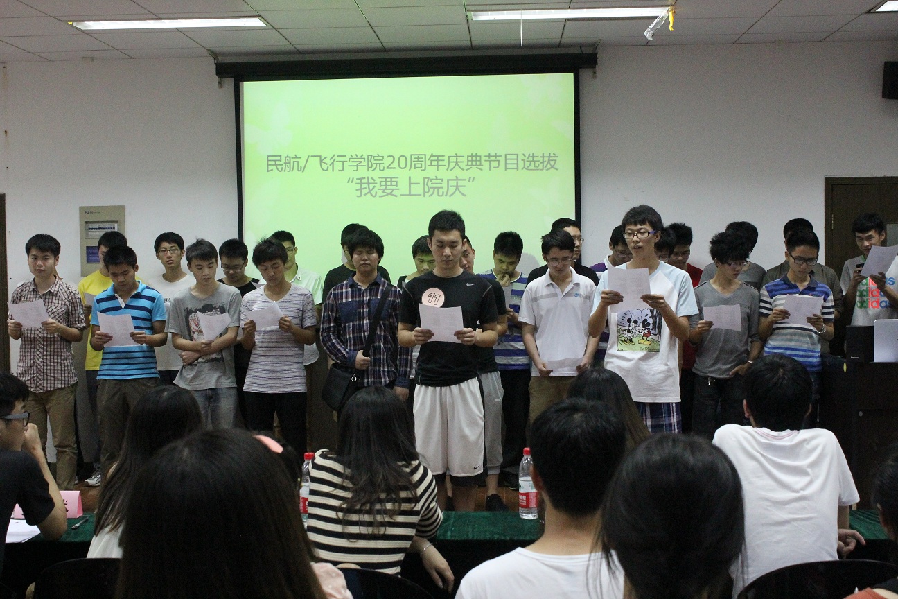 为迎接民航∕飞行学院20周岁生日,举办一场热烈的院庆晚会,学院早在4月底就启动了“我要上院庆”活动,经过前期宣传、报名、初审,最终有歌曲、舞蹈、器乐、语言四类共计22个节目进入决赛。6月3日晚19:00,民航∕飞行学院“我要上院庆”决赛在将军路校区艺术中心团体辅导室拉开帷幕,评审团分别由5位专业评委和22位大众评委组成。