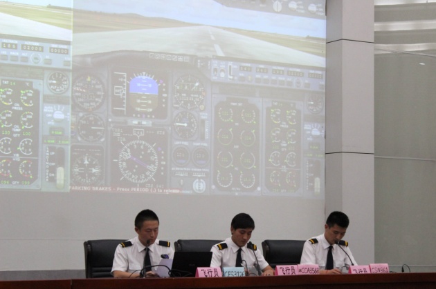 联合决赛首先由主持人对比赛规则和评分进行说明,并由场外指导郭野晨风对模拟空管、模拟飞行联合决赛所使用的模拟空域进行介绍。之后6组选手分别上台进行比赛,虽然各位选手尚未进行专业课的学习,但通过自学和前期充分的准备,选手们现场表现从容淡定,不论中英文对话都流畅、自如。推出跑道、进入走廊口、准备着陆、处理特情,都灵活应对,更有模拟飞行员使用模拟飞行软件进行起飞操作,真实进行场景再现,在答辩的过程中,评委专业的提问和中肯的点评也让选手对工作内容有了更加深刻的认识。经过一番精彩激烈的角逐,冠军最终由 Air Force One团队获得,六名选手获得个人优秀奖。比赛结束后,午夜巴黎