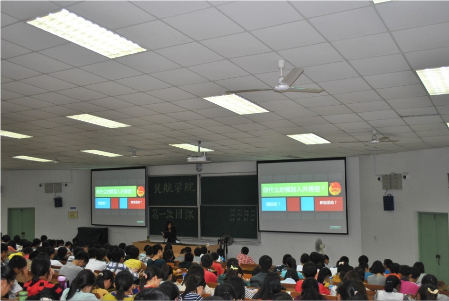 本次团课通过互动话题引导学生们重新认识团员的身份,引导同学们思考“入团动机是什么”和“团组织能够给大家带来什么”这两个问题,并通过四个层次与同学们一起逐级地寻找答案。第一层次,介绍了校级团组织的基本架构及校级各类学生组织;第二层次,通过精选的18张图片简要地回顾了校团委往年举办的一系列精彩活动。创新创业、志愿服务等活动令新生们咋舌惊叹,缤纷多样的校园文化和色彩斑斓的社团活动吸引着新生们的眼球。学校首次推出的心愿卡活动更是让人耳目一新,使新生们感受到校团委为学生服务的良好姿态;第三层次,全面介绍院级团委工作范畴及架构,展示院级各项活动以及取得的各类丰硕成果,引导新生积极参与院级各类活动,历练成长;第四个层次,院级组织学生负责人以个人成长历程为切入点与新生分享在共青团组织中锻炼成长的故事。