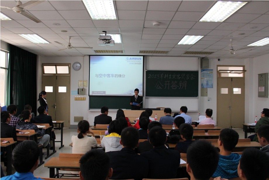 2013年10月23日下午1点50分,2013本科生空中客车奖学金公开答辩在将军路校区6403教室准时举行。学院领导﹑各年级辅导员﹑参加本次答辩的21位选手以及部分学院前来观摩的同学参加了本次答辩会。