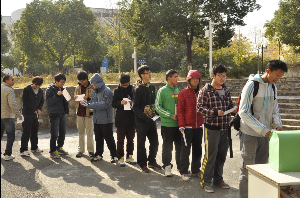 13级的新百名大一新生在一号楼门前广场上集合。伴随着大声呼喊出的“爸爸妈妈,我爱你们!”的感恩祝福,将手中的红色展板拼接成一个心形图案,摄像机记录了这感人的一刻。五十多个冬日里绽放的笑脸,五十多份遥远却真挚的祝福汇聚在一起,视频将发送给家乡的父母,表达对父母最深切的爱。“鸿雁传书,薄信浓情”。同学们在28日中午,将昨晚写好的家书投放在精心制作的“家书投递信箱”中。小小信箱,传递的却是在外的学子们对家人的思念与感激。